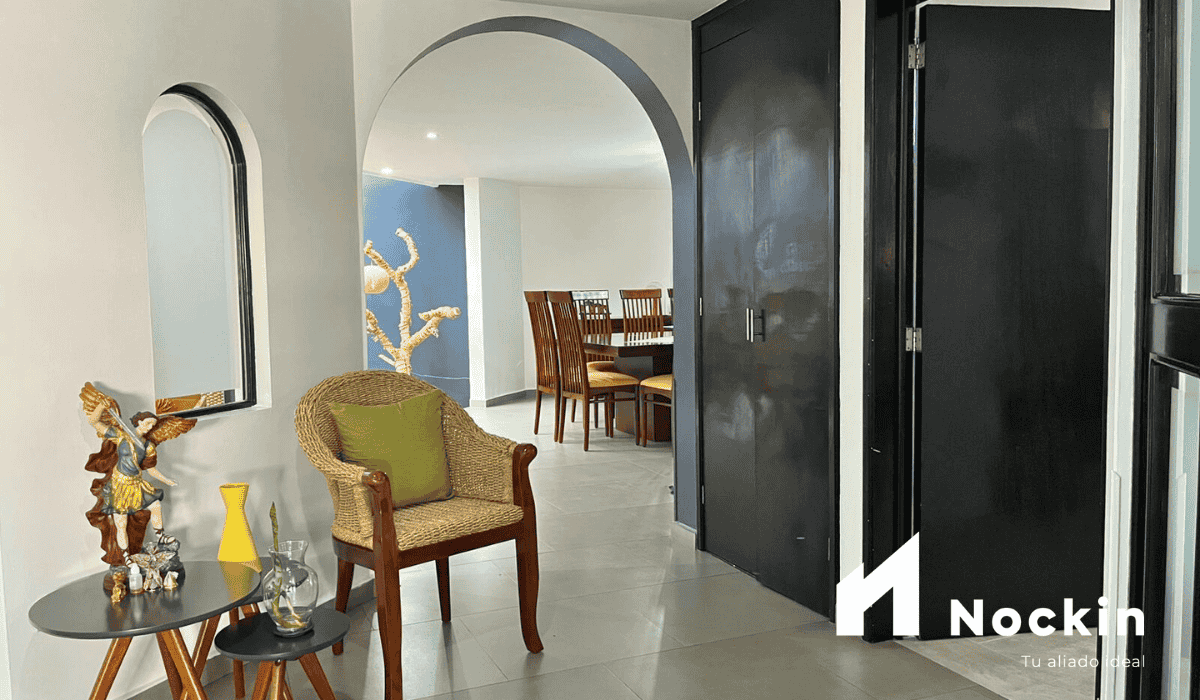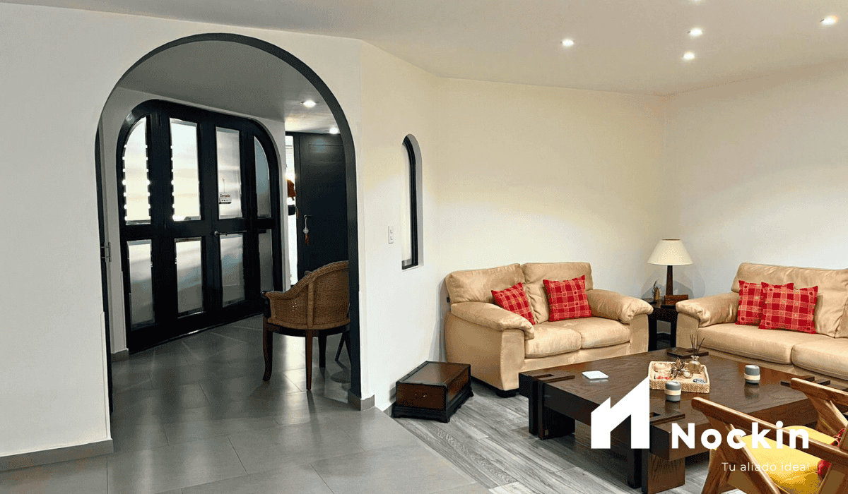 Excelente casa amueblada en Arcos del Sur ubicado a 4 min. de Centro Mayor Zavaleta y a 7 min. del Centro Comercial Angelópolis. La casa tiene 197m2 de construcción distribuida en dos niveles. En planta baja tiene recibidor, medio baño, despacho, sala-comedor con bar, cocina con barra, patio de servicio, área de lavado techada y cuarto de servicio con baño; en la planta alta tiene recámara principal con vestidor y baño y dos recámaras secundarias con baño compartido.