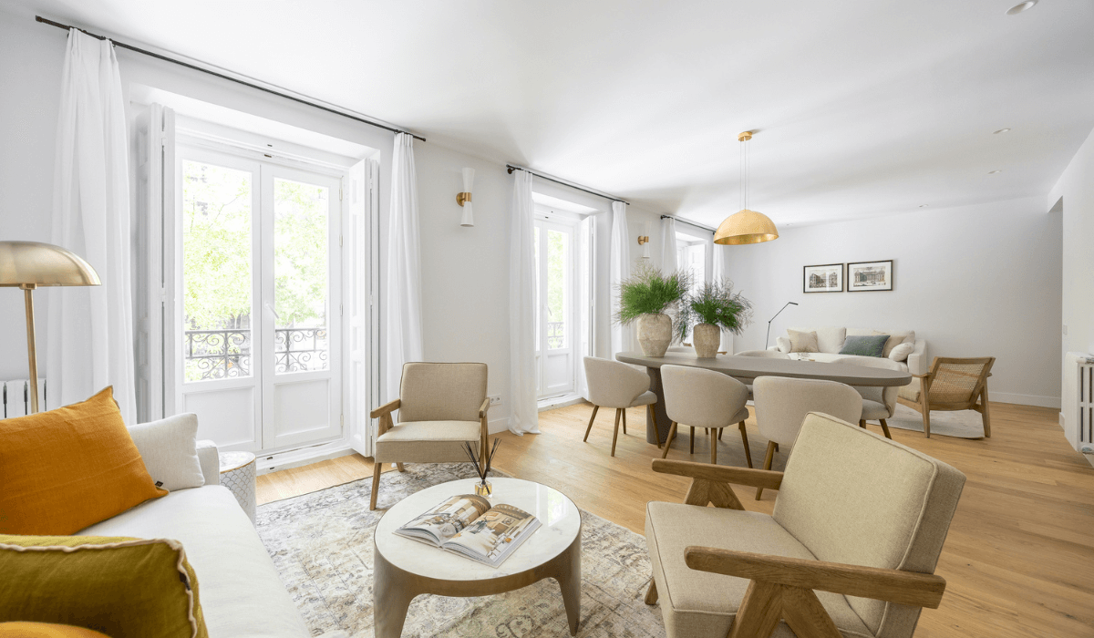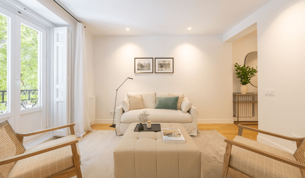 Excelente departamento en la calle de Alcalá ubicado a 1 min. del Parque del Retiro y de la Puerta de Alcalá. Cuenta con una superficie de 148m2. El piso, integralmente reformado de diseño cuenta con dos amplias zonas de salones, muy luminosas por sus cuatro balcones a la calle con orientación sur, un comedor, una cocina abierta, tres magníficos dormitorios en suite, aseo de cortesía, una zona de lavadora independiente y un trastero.