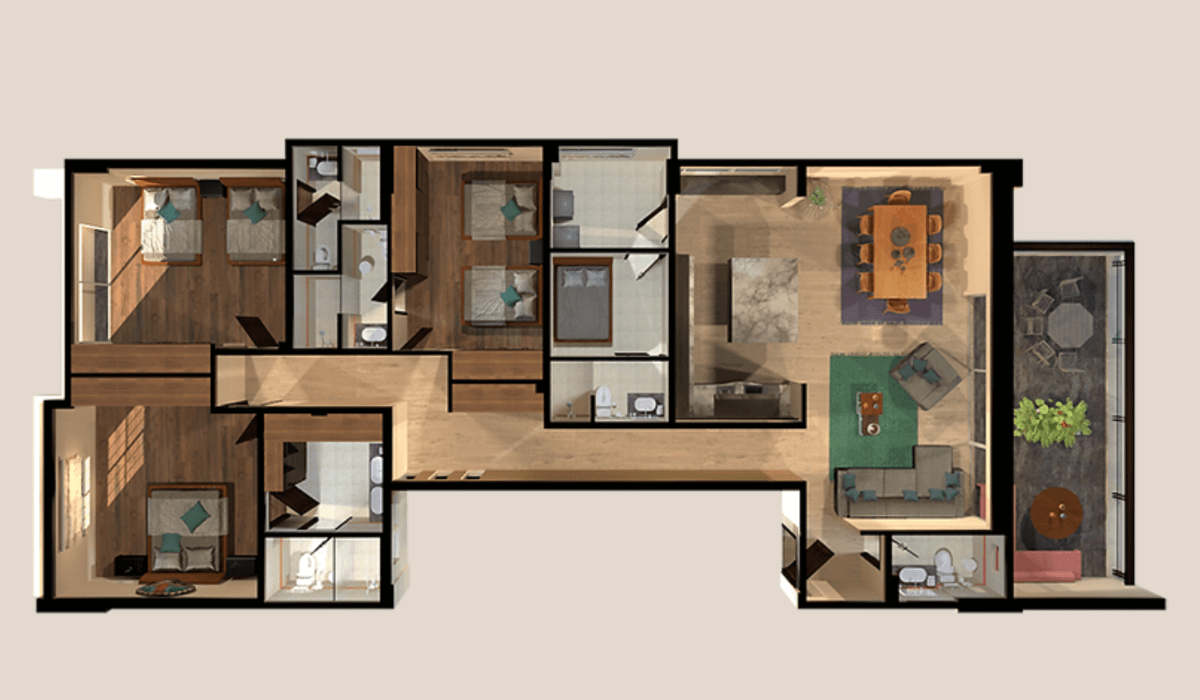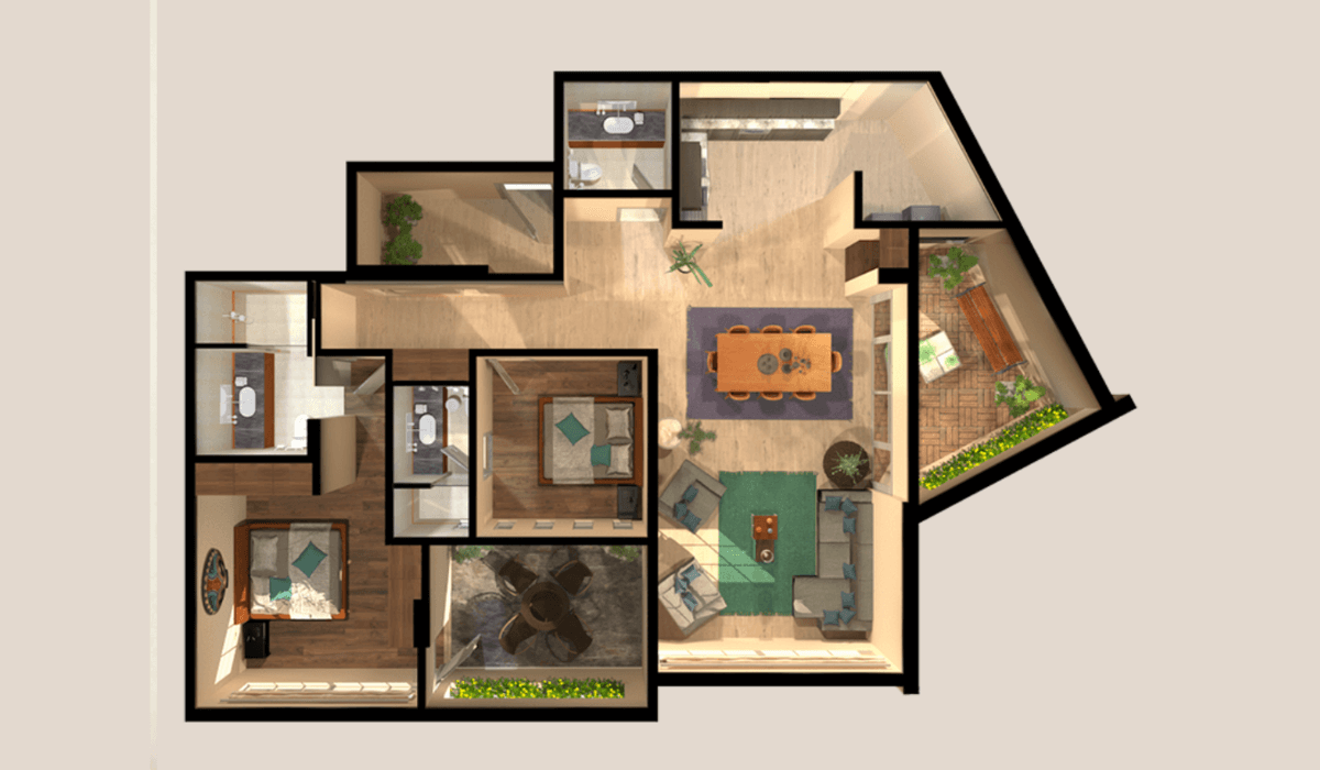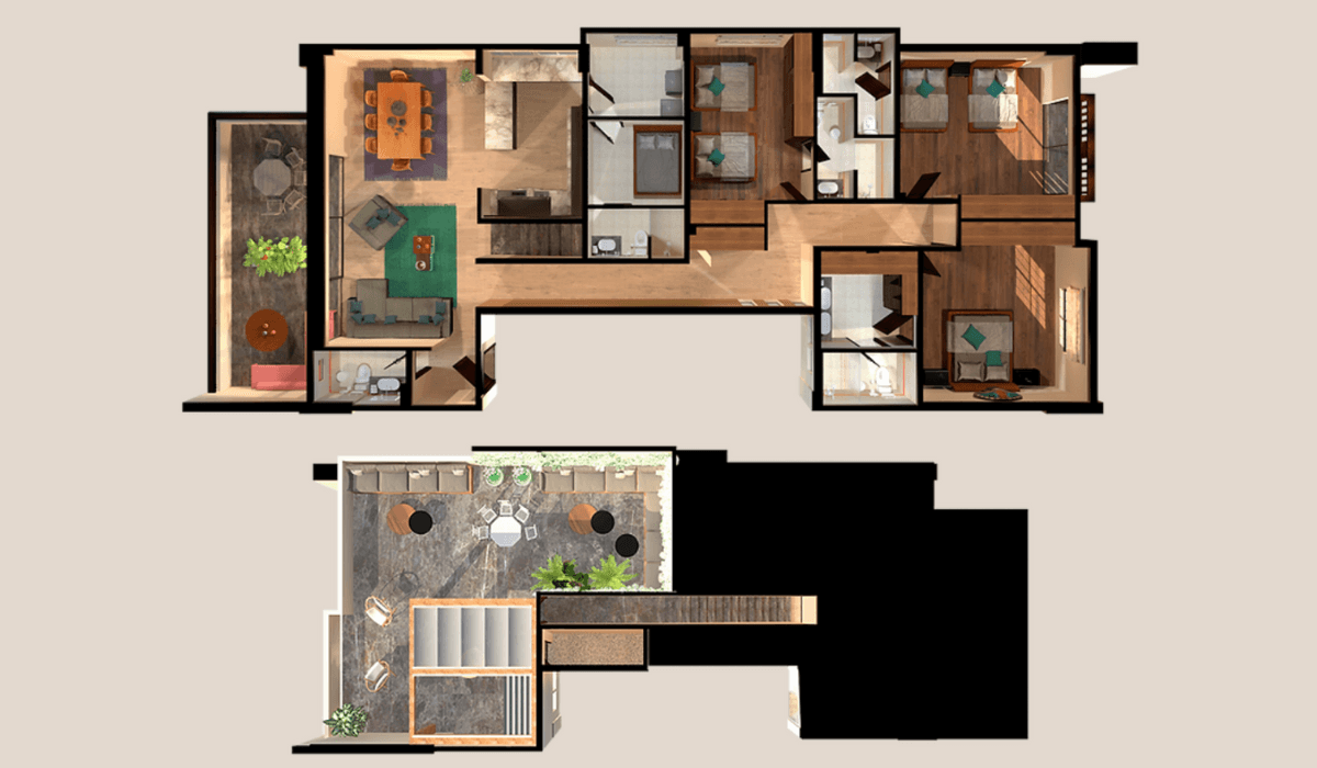 3 habitaciones • 2.5 baños • terraza • Cuarto de servicio • Roof Garden