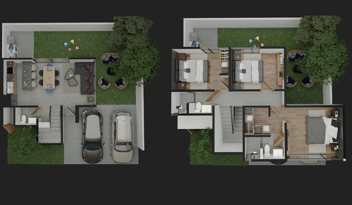 3 habitaciones (1 en planta baja) • 3.5 baños • jardín trasero y lateral • Roof Garden