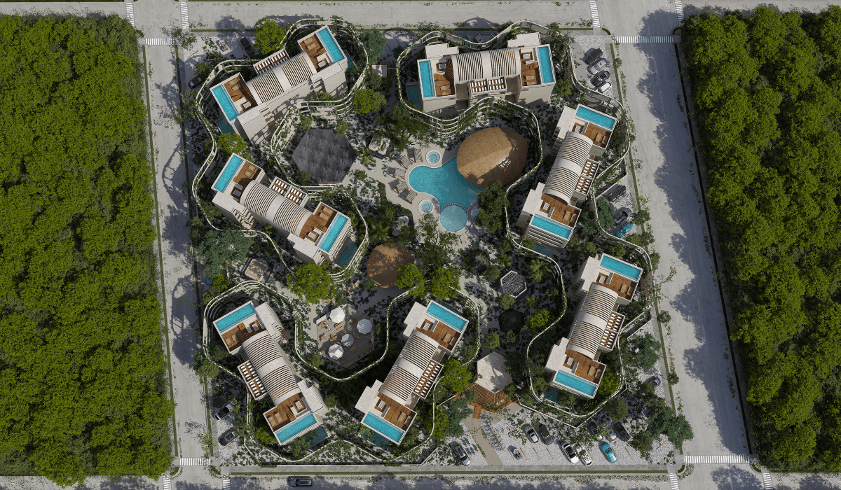 Kaab es un desarrollo único ubicado en Tulum a 5 min. de la playa, 17 min. de la Zona Arqueológica de Tulum y 55min. del Aeropuerto de Tulum. Esta inspirado en la geometría perfecta que crean los panales de abejas; tiene un ambiente donde la arquitectura y la naturaleza coexisten como un mismo elemento. Más de 60% del proyecto se mantendrá como selva o jardín. Contará con dos modelos de townhouses, todos con alberca privada; Garden con jardín privado y Roof con roof top privado
