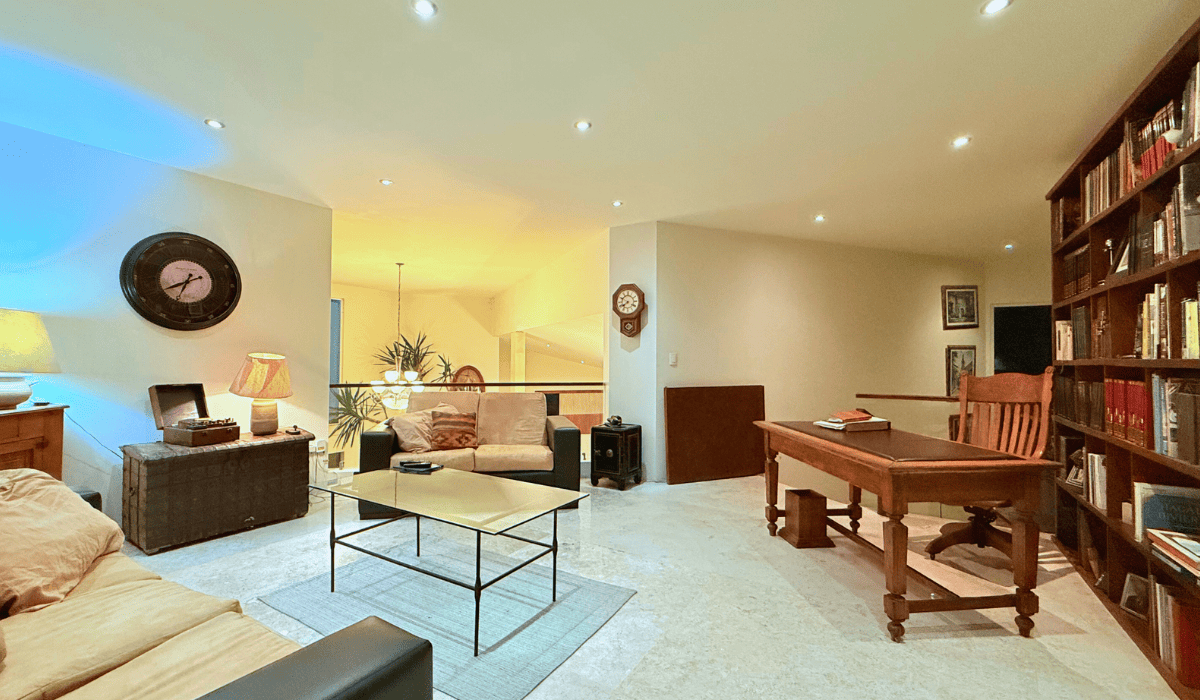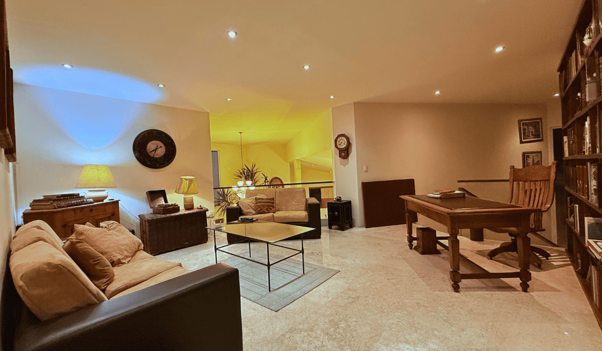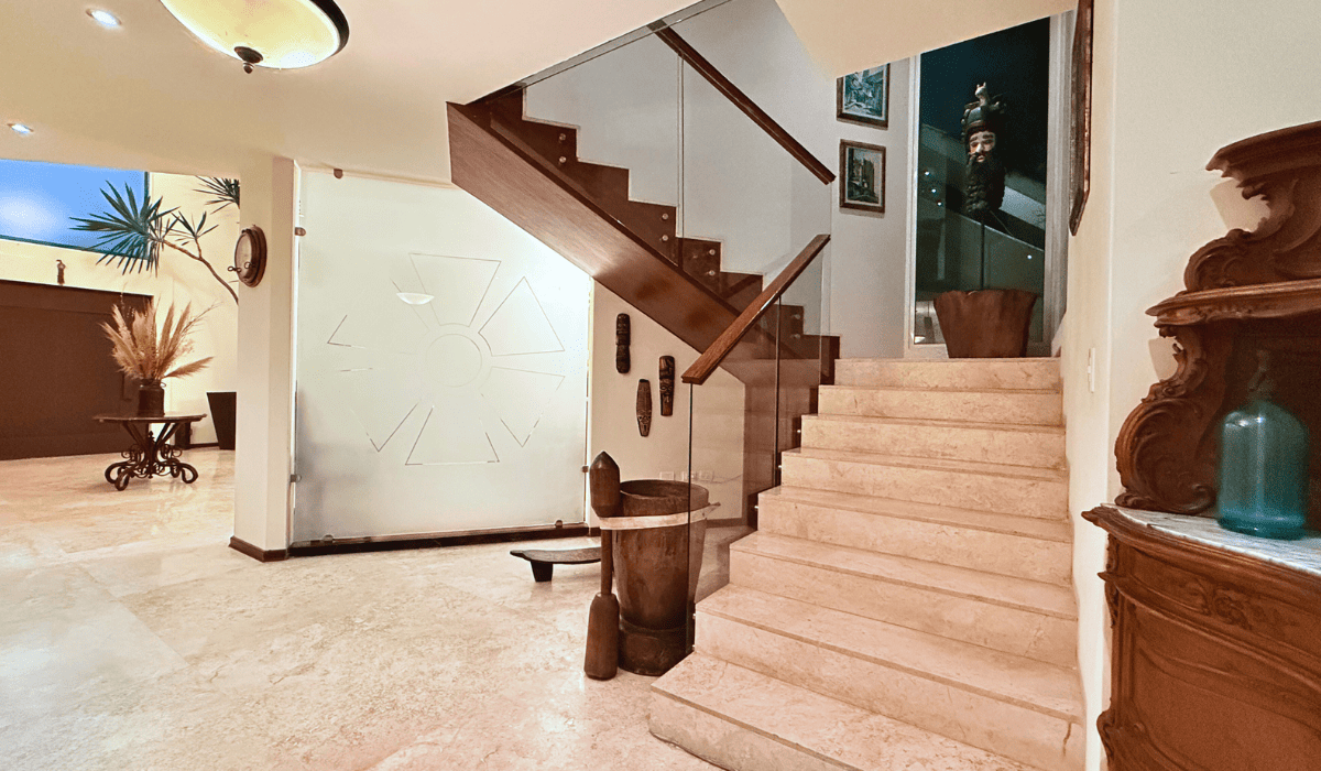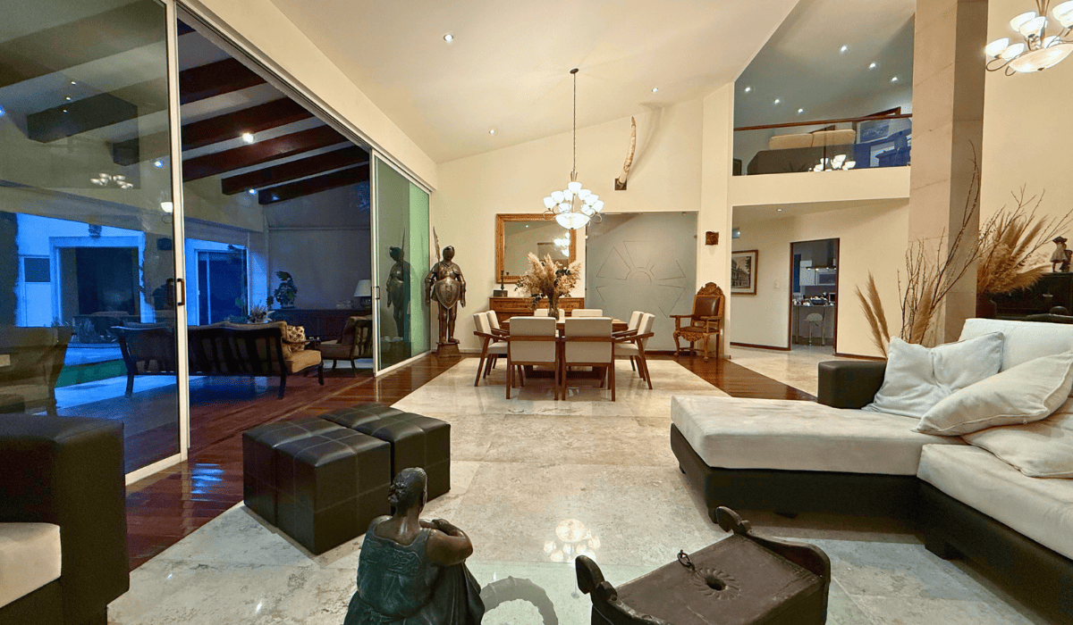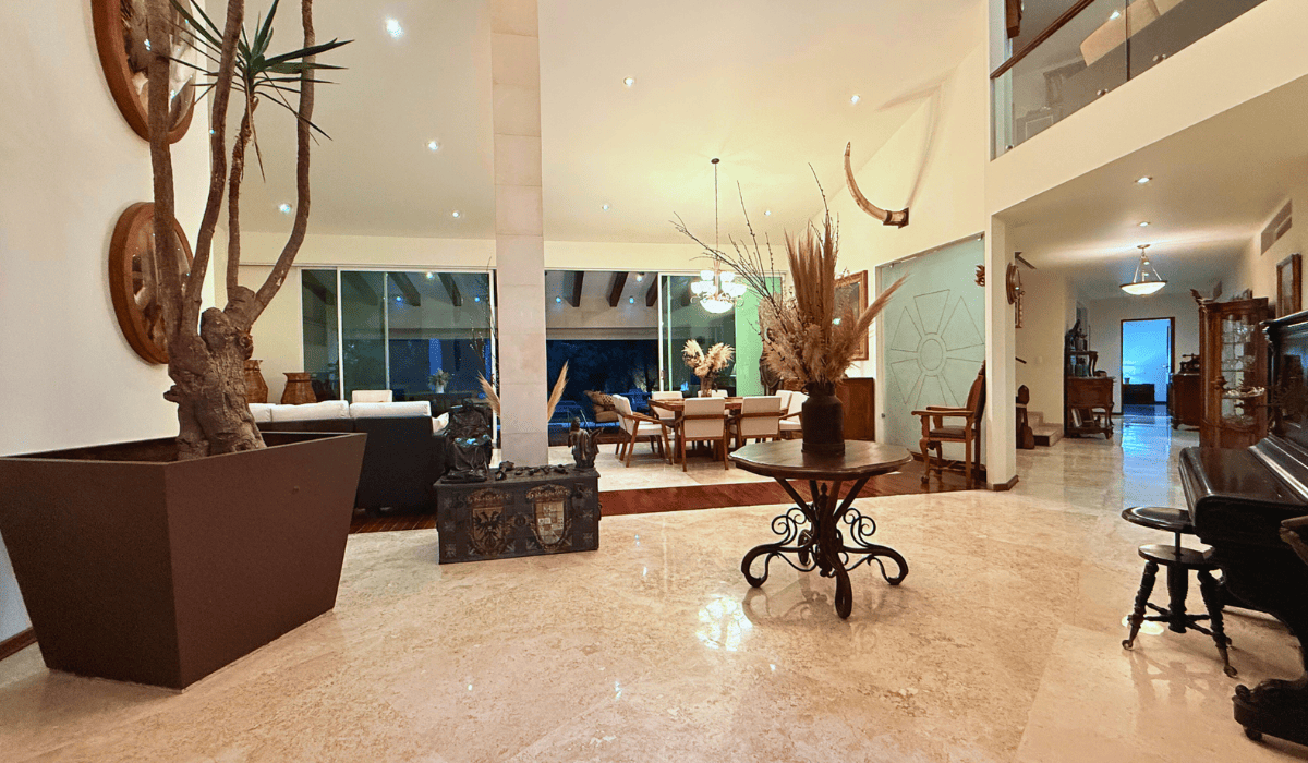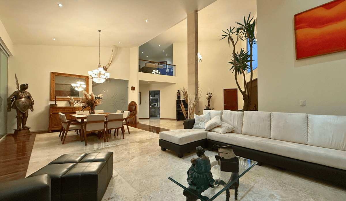 Extraordinaria casa en San Martinito ubicada 3 min. del Centro Comercial Angelópolis y a 1 min. del CRIT. La casa tiene 786m2 de construcción distribuida en dos niveles; en planta baja cuenta con sala, comedor, cocina cerrada, medio baño, terraza con sala y comedor exterior, cuarto de servicio, jardín con alberca, salón de eventos, recámara principal con vestidor y baño con jacuzzi y estudio; en planta alta tiene sala de lectura y tres habitaciones secundarias cada una con baño.