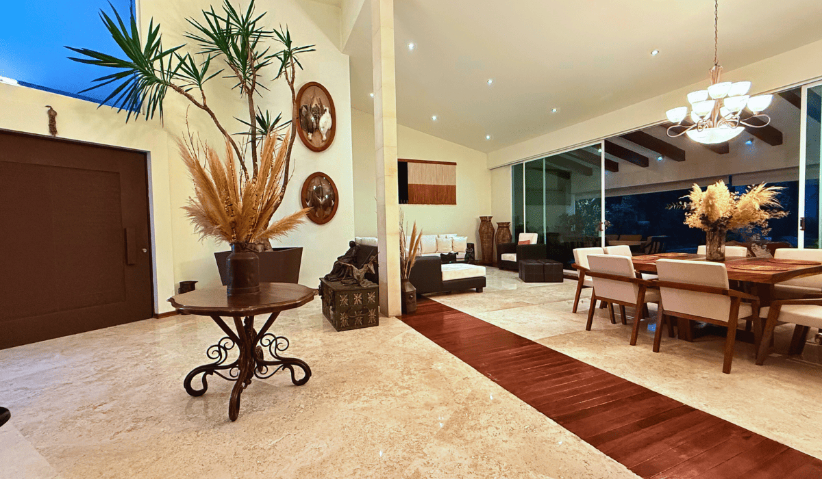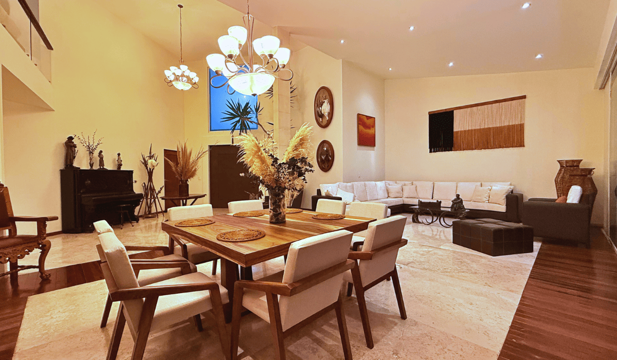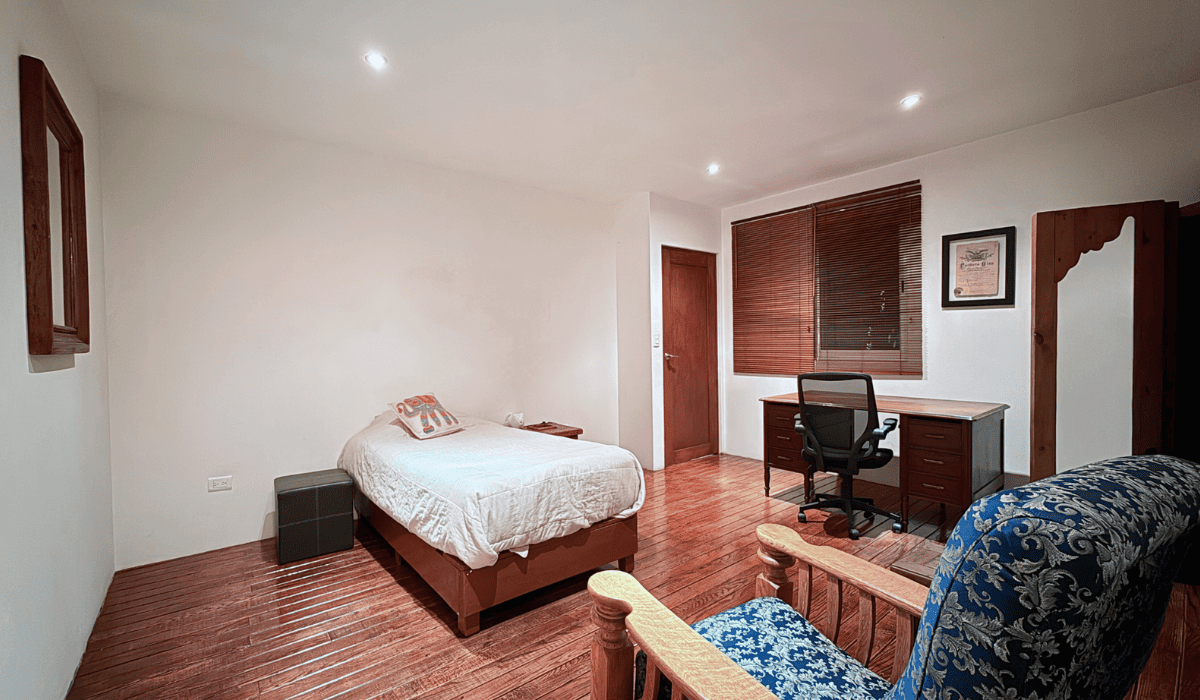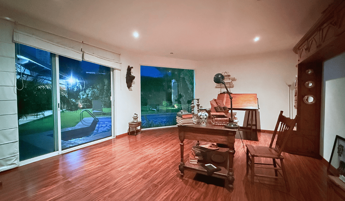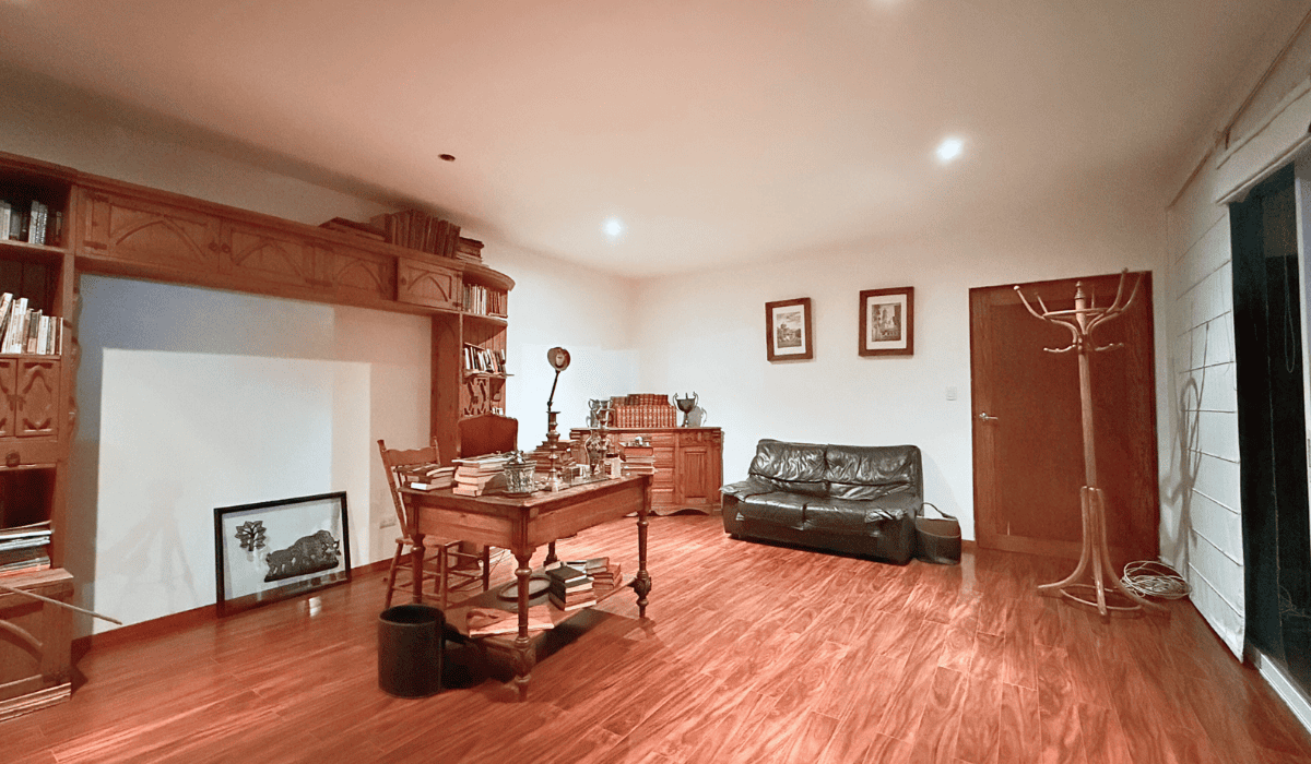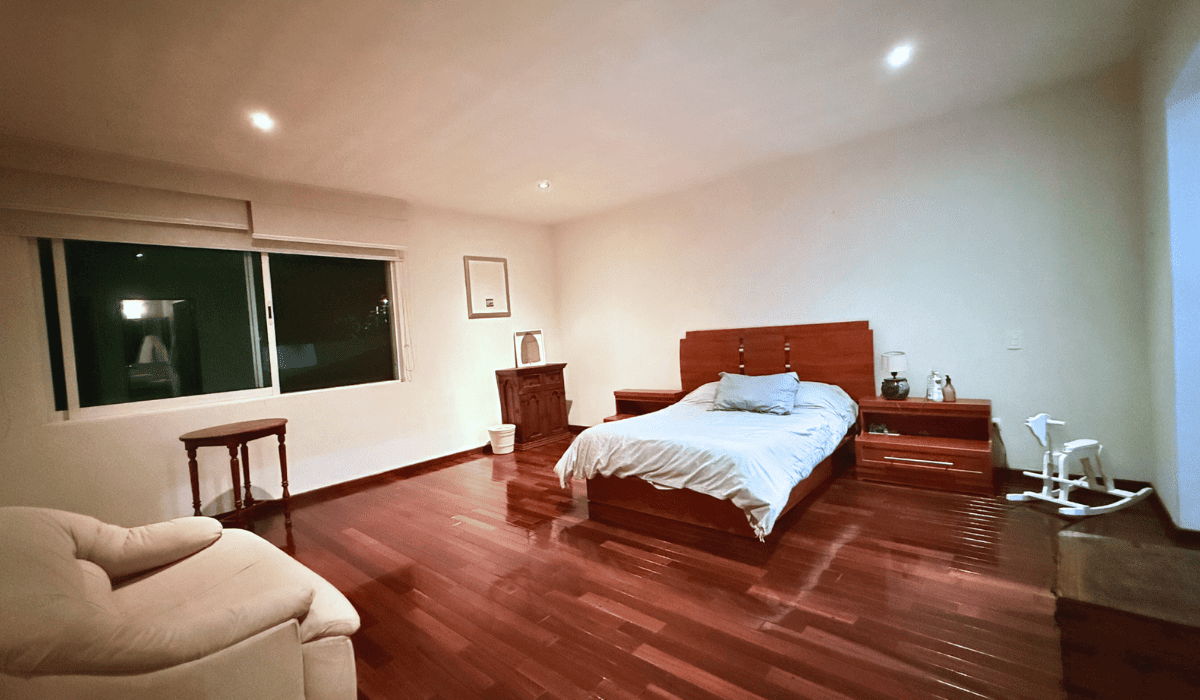 Extraordinaria casa en San Martinito ubicada 3 min. del Centro Comercial Angelópolis y a 1 min. del CRIT. La casa tiene 786m2 de construcción distribuida en dos niveles; en planta baja cuenta con sala, comedor, cocina cerrada, medio baño, terraza con sala y comedor exterior, cuarto de servicio, jardín con alberca, salón de eventos, recámara principal con vestidor y baño con jacuzzi y estudio; en planta alta tiene sala de lectura y tres habitaciones secundarias cada una con baño.
