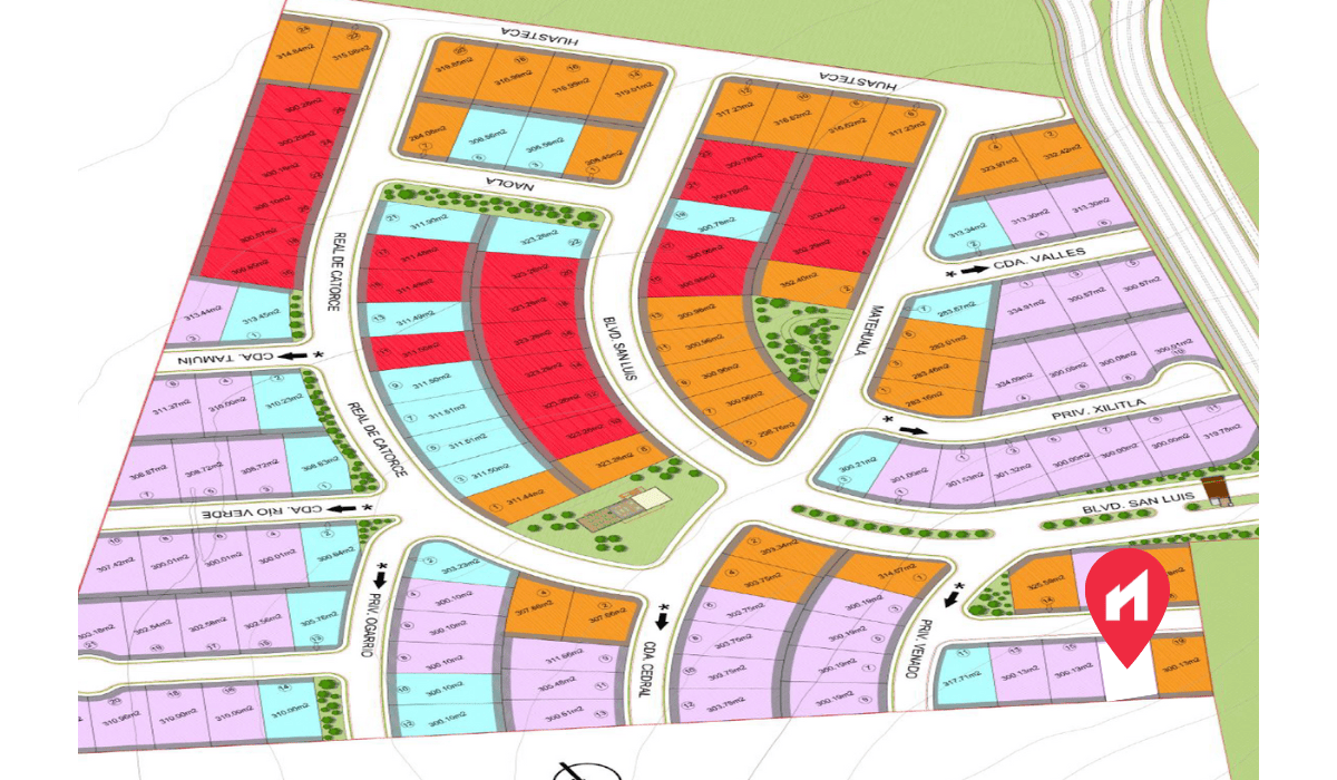 Excelente terreno en Parque Potosí ubicado a 1 min. de Barrio Cascatta y del Club Deportivo Ómada. El terreno tiene 302.11m2 de superficie. El terreno cuenta con 11.91m de frente y 25.39m de fondo y esta en una privada dentro del clúster.